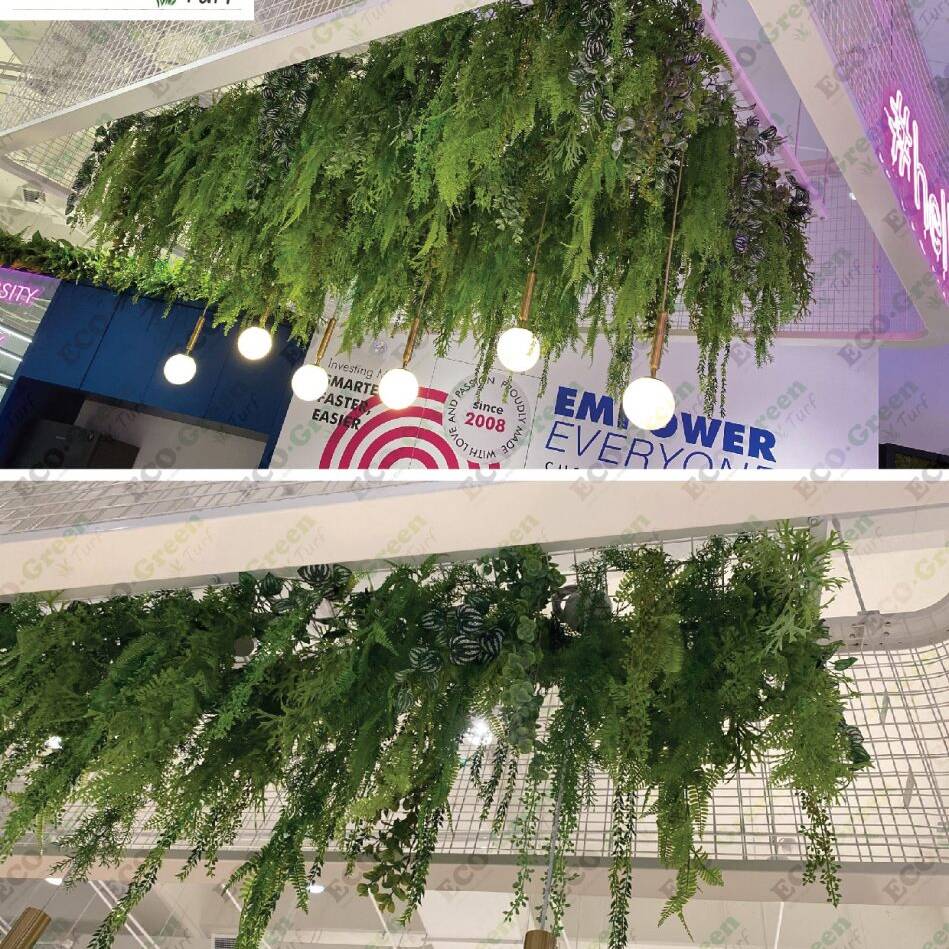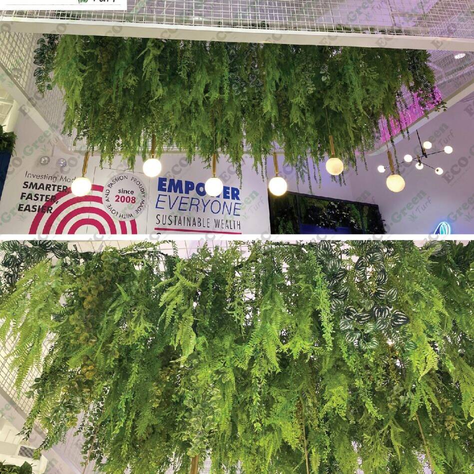 A commercial space enhancement at 8VI Singapore Headquarters featuring Artificial Hanging Plant Setting Up. This installation introduces suspended greenery across the space, creating a refreshing and visually engaging environment while maintaining a clean and professional look.