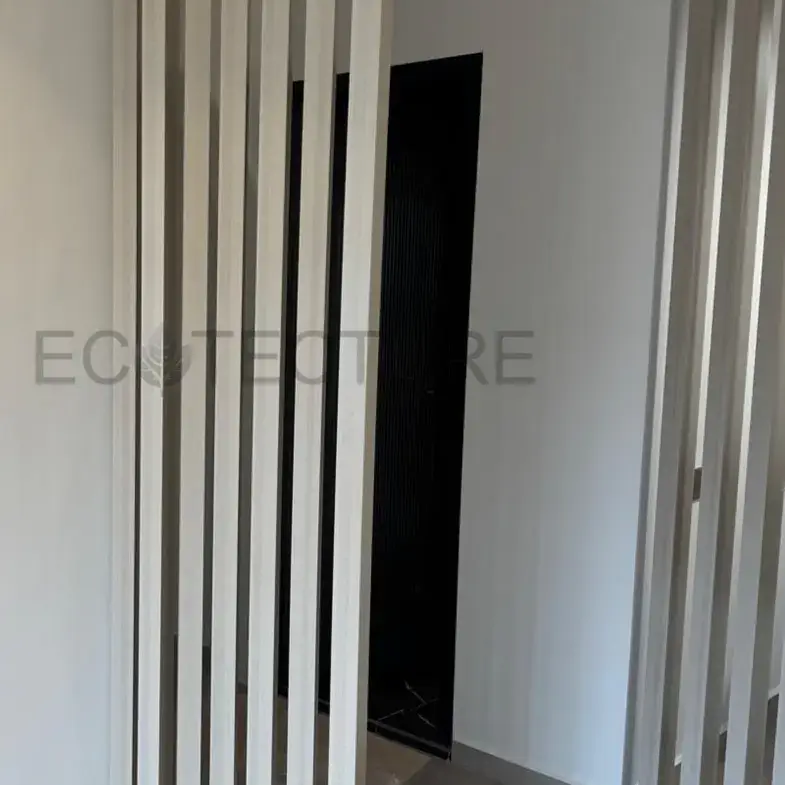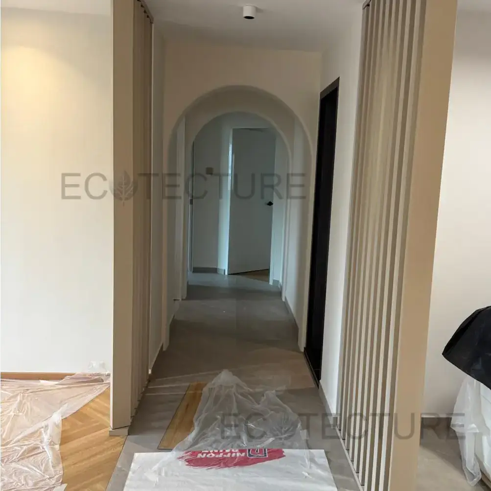 A hallway entrance upgrade at HDB Anchorvale Rd featuring an Aluminium Tube Divider – Rectangle Tube (Rotatable). This installation adds clean lines and structured definition to the entrance while allowing adjustable privacy and light flow, keeping the space functional yet visually appealing.