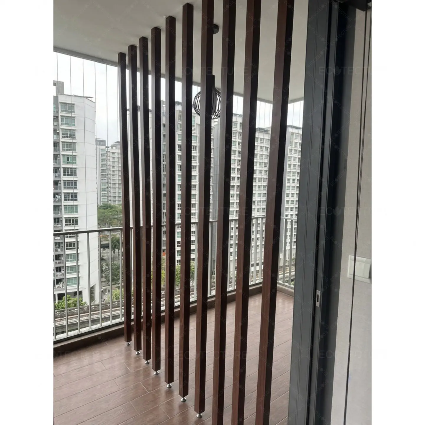An enclosed balcony enhancement at Condominium Twin Waterfalls featuring an Aluminium Tube Divider – Square Tube, also known as a Column Divider. This installation adds subtle structure and definition to the space while maintaining an open and airy feel within the balcony area.