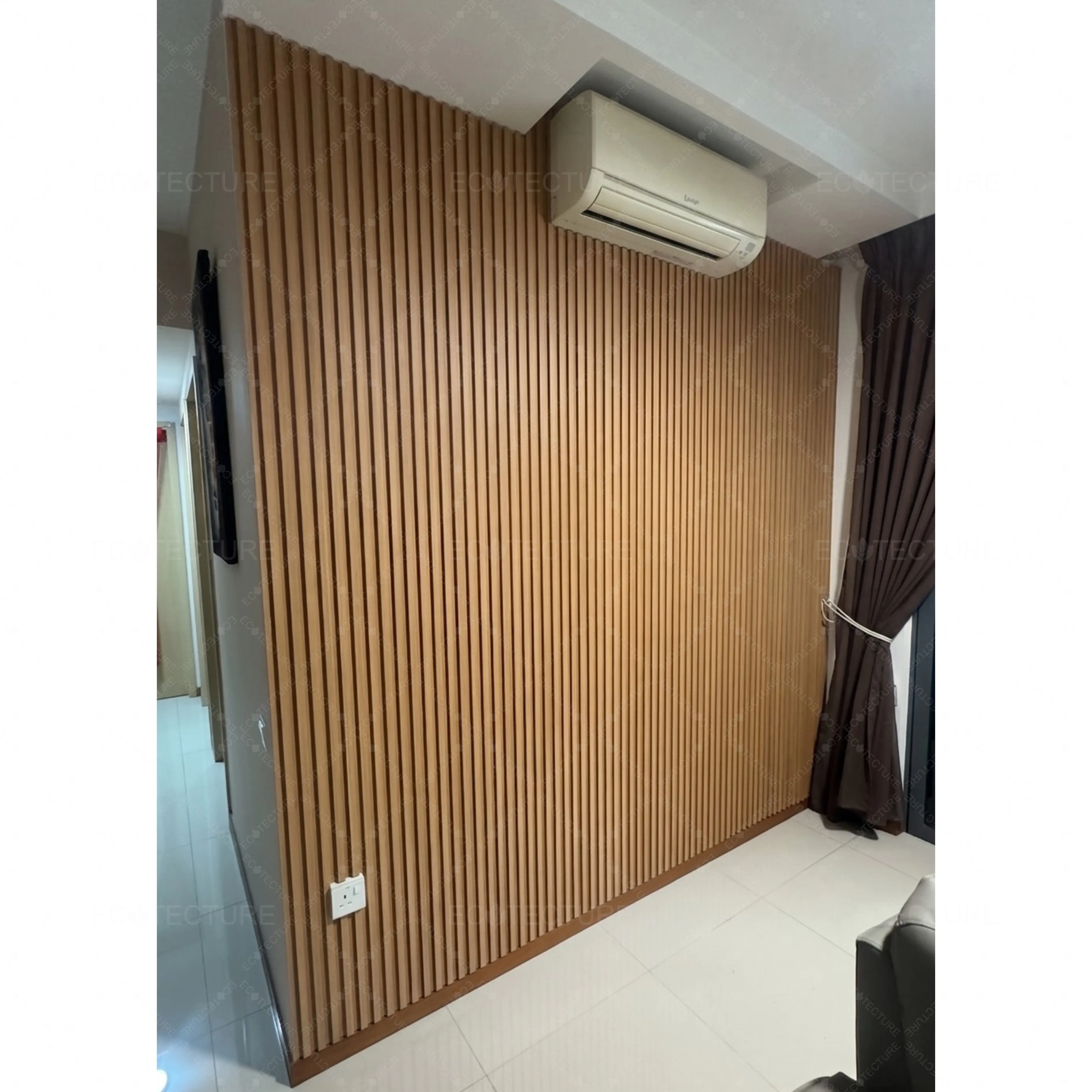 A living room feature wall enhancement at HDB Choa Chu Kang featuring Fluted Wall Panel Installation @SQ01. This installation adds texture and depth to the wall, creating a modern focal point that elevates the overall interior design.
