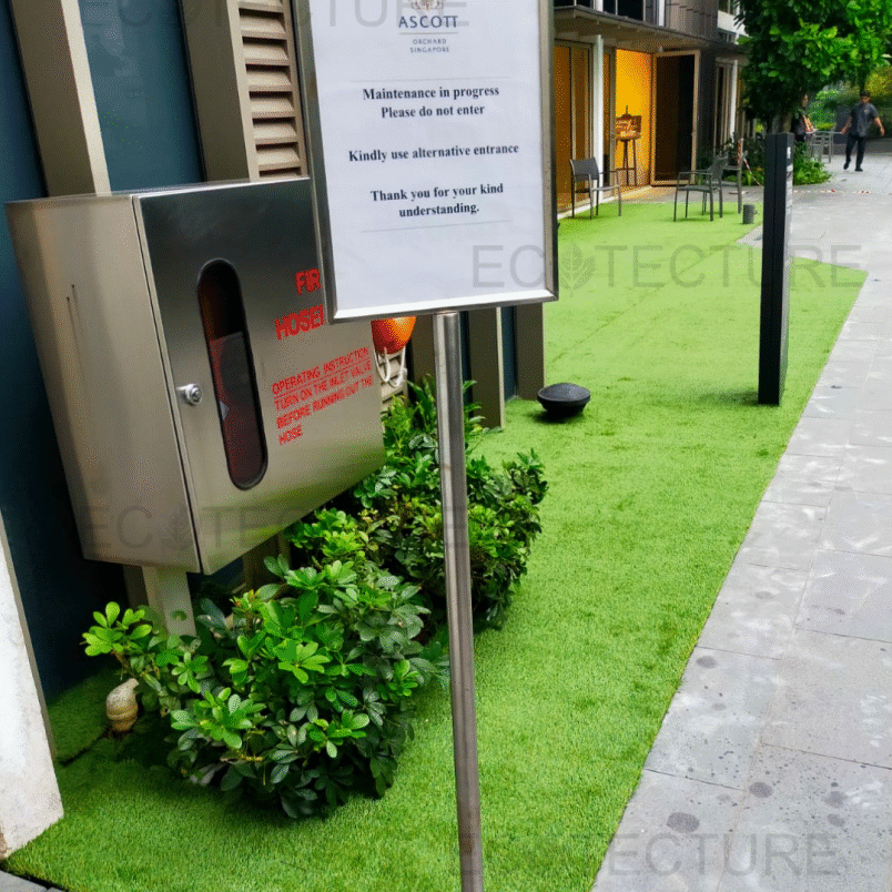 An outdoor enhancement designed to elevate the look and functionality of the gym’s exterior area at Ascott Hotel Orchard Singapore. The artificial grass creates a clean, refreshing, and welcoming atmosphere that complements the fitness environment while offering a neat and well-maintained appearance all year round.