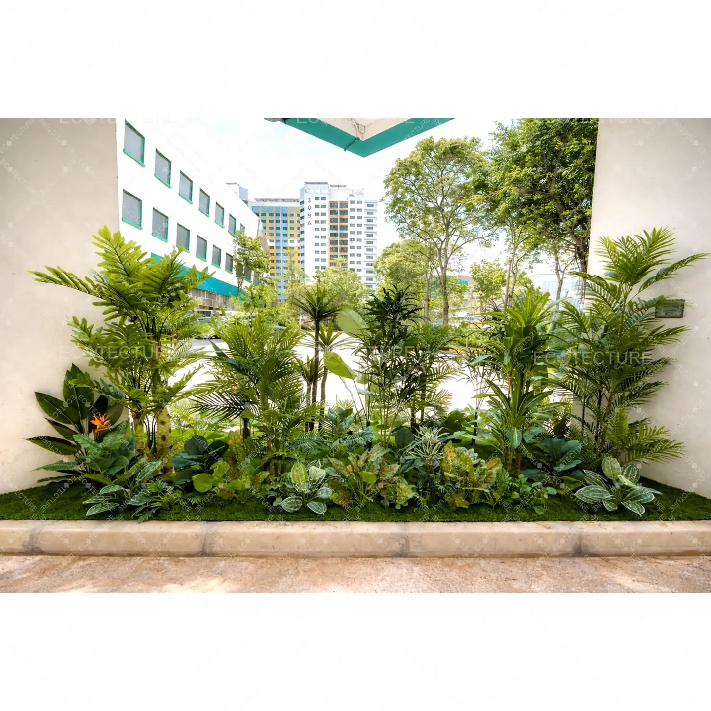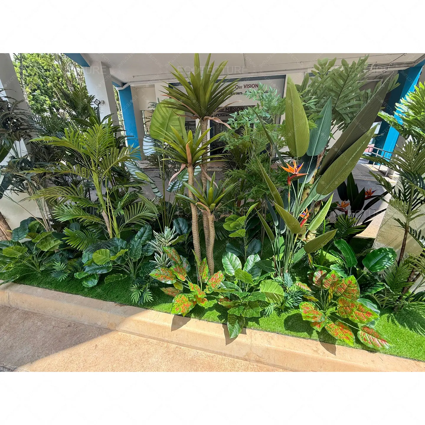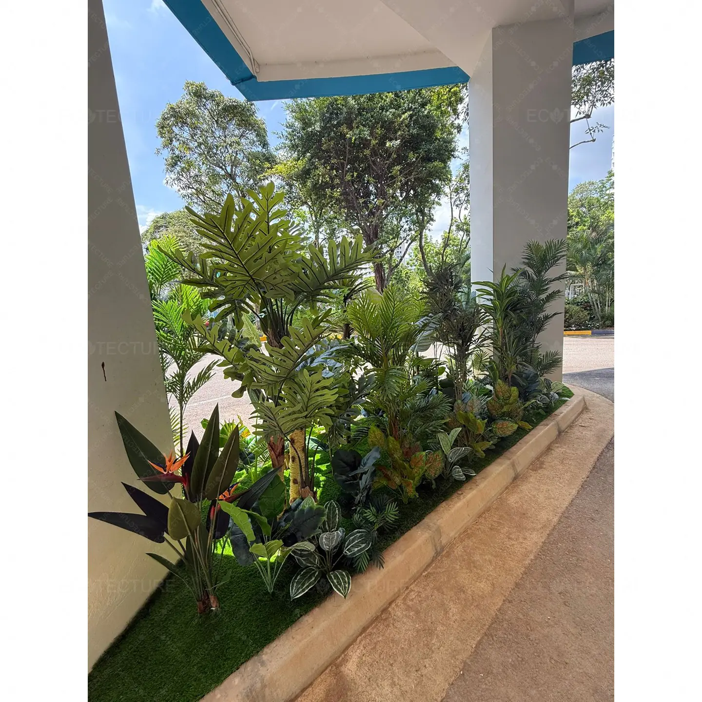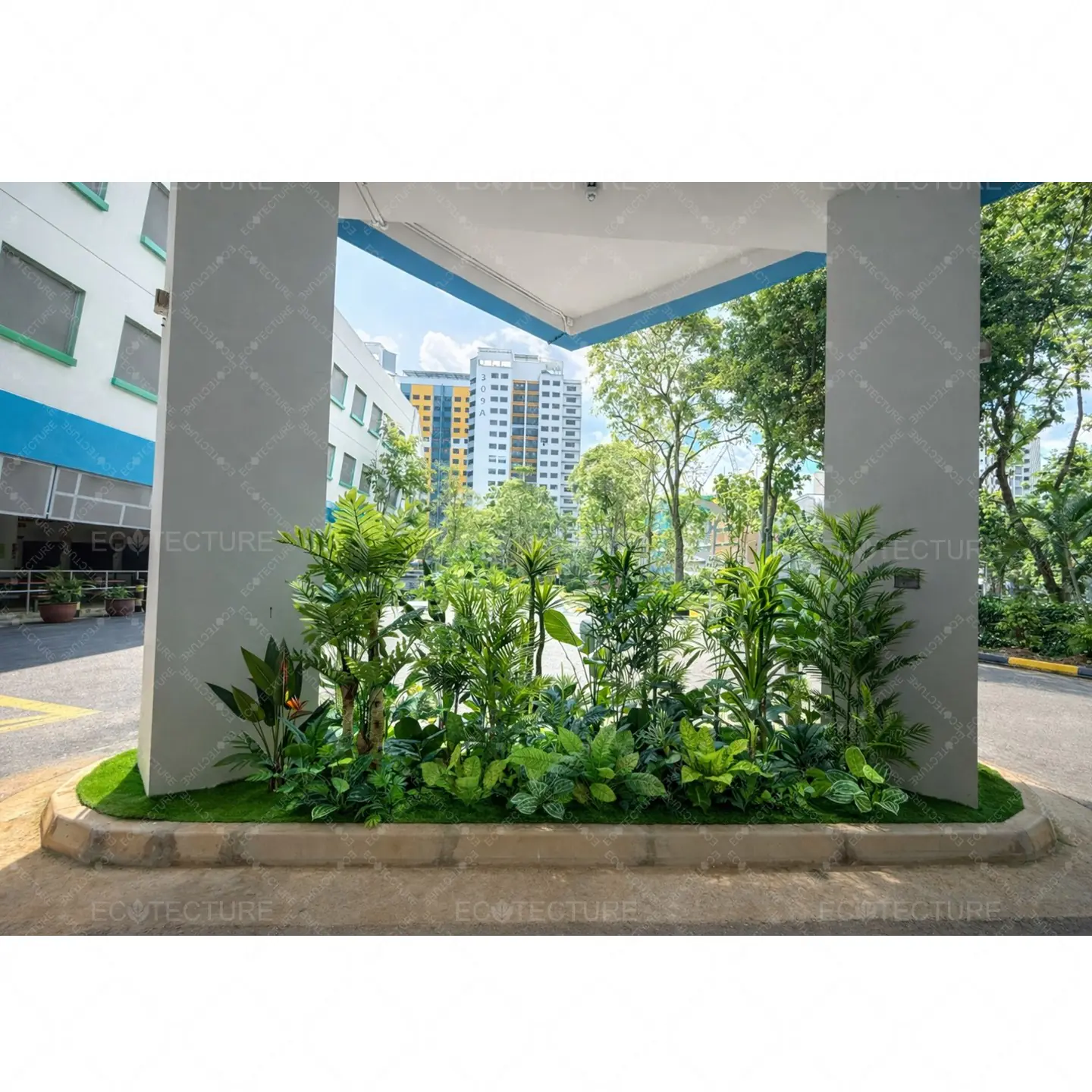 An entrance landscape feature at Anchor Green Primary School featuring Artificial Plant Decor Setting Up. This installation introduces structured greenery to the entrance, creating a vibrant and welcoming environment for students and visitors.