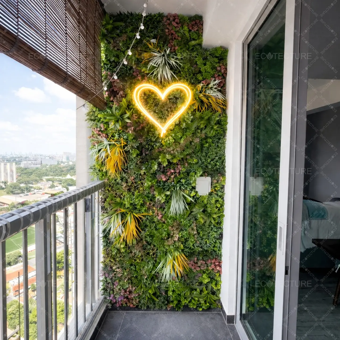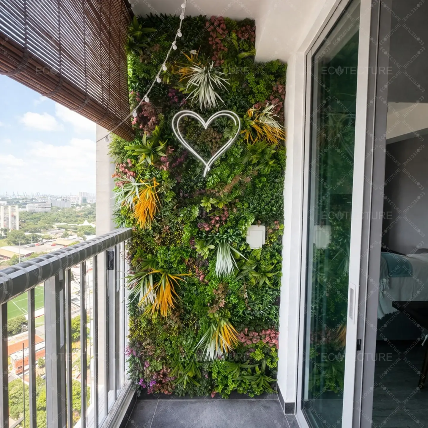 An outdoor balcony wall enhancement at HDB Margaret Drive featuring Artificial Wall Plant / Backdrop Installation @UV17. This installation introduces lush vertical greenery to the space, creating a refreshing and visually appealing feature while elevating the overall balcony ambience.