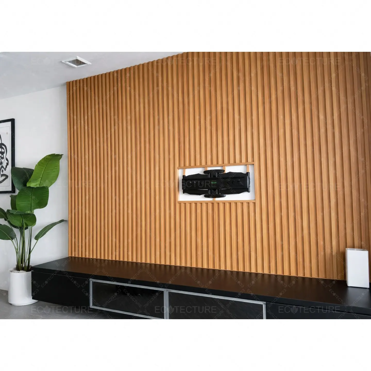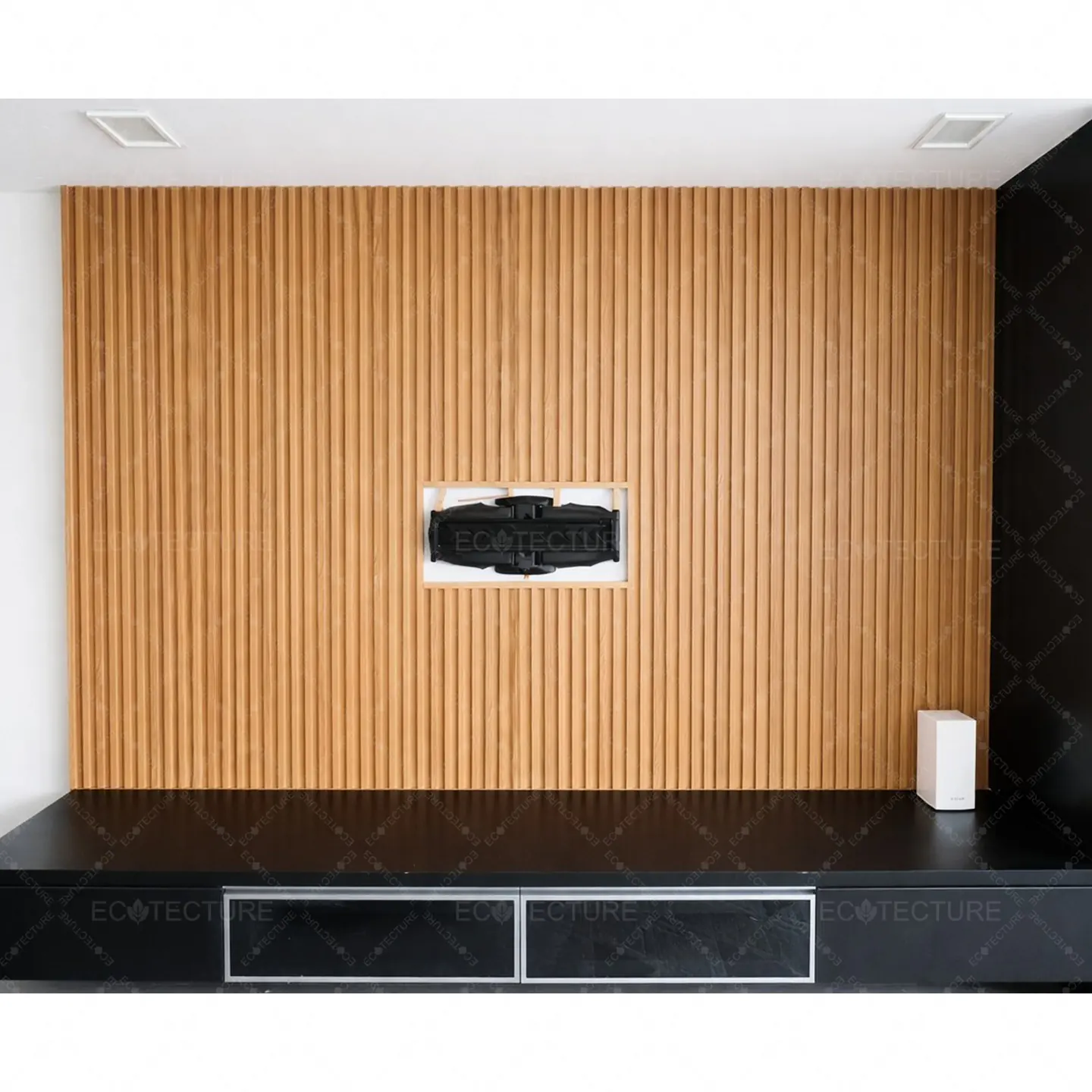 A TV console feature wall enhancement at HDB Simei featuring Fluted Wall Panel Installation @SQ01. This installation adds texture and depth to the wall, creating a modern and stylish focal point that elevates the overall living room design.