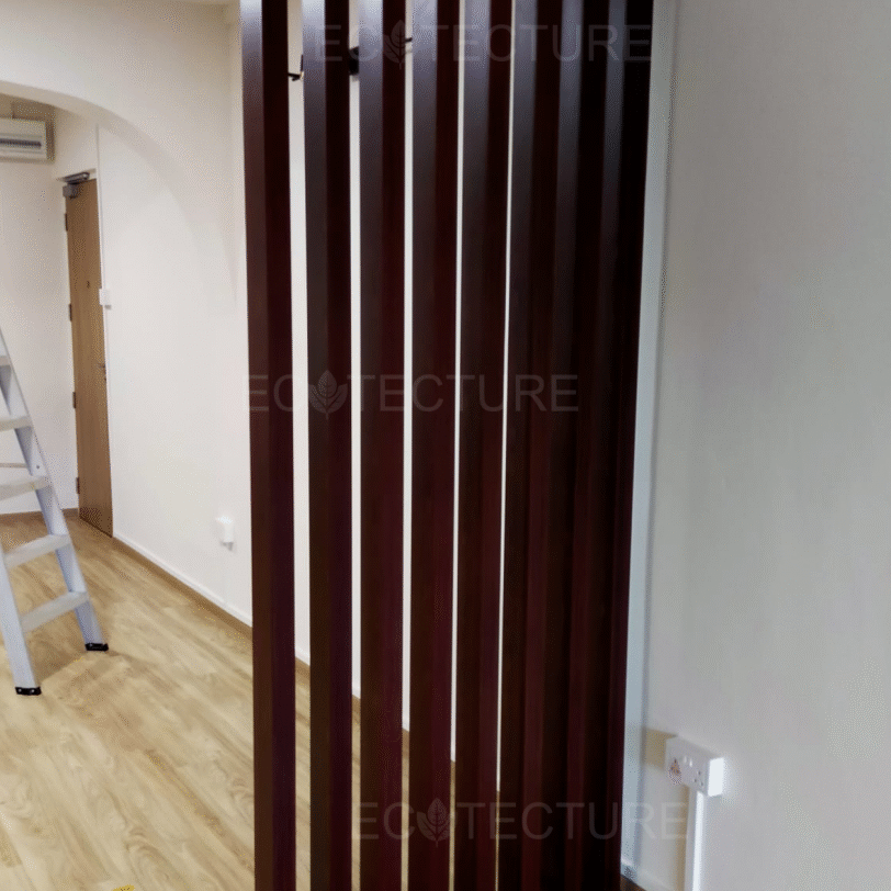 A living room decor enhancement at HDB Choa Chu Kang featuring an Aluminium Tube Divider – Square Tube, also known as a Column Divider. This modern installation adds subtle structure and definition to the living space, creating a stylish partition while keeping the area open and airy.
