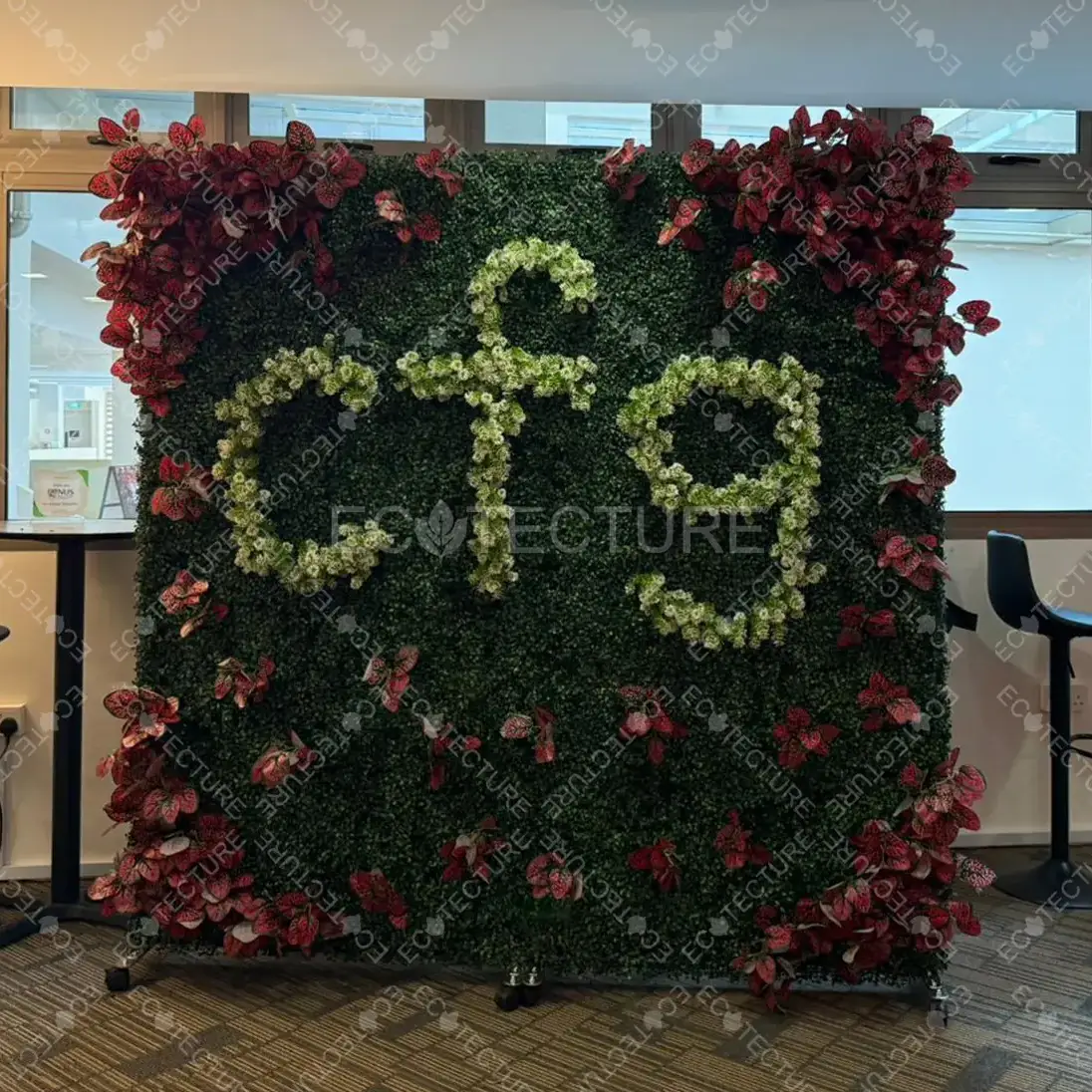 An office area enhancement at NUS (CFG), featuring a customized Artificial Wall Plant / Backdrop installation to create a modern and refreshing workspace feature. The tailored design adds visual interest and greenery to the office environment, helping to uplift the overall look while keeping the space neat and professional.